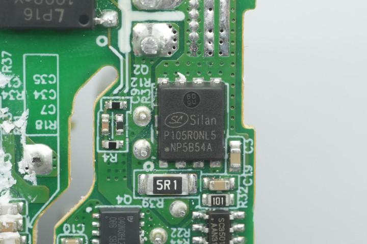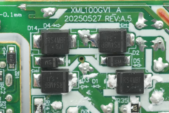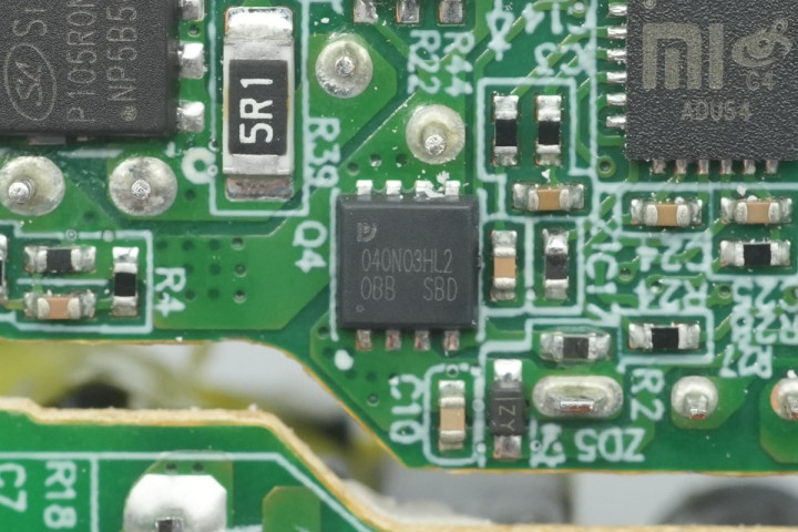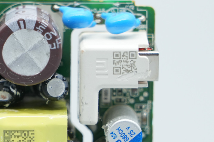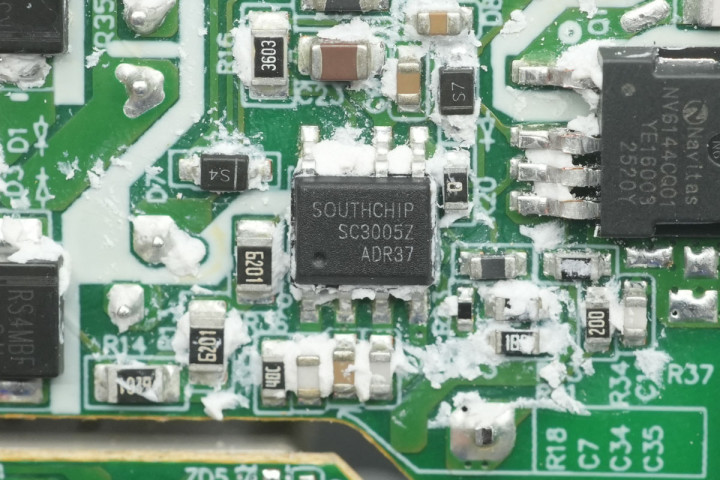 充电头网通过拆解了解到,小米这款充电器采用全套南芯科技芯片方案,使用SC3005Z初级主控芯片搭配SC3501同步整流芯片,并使用一颗丝印C4的协议芯片。初级开关管采用纳微半导体NV6144C,搭配使用士兰微电子同步整流管。