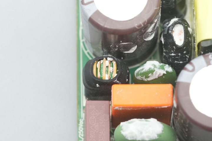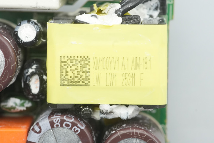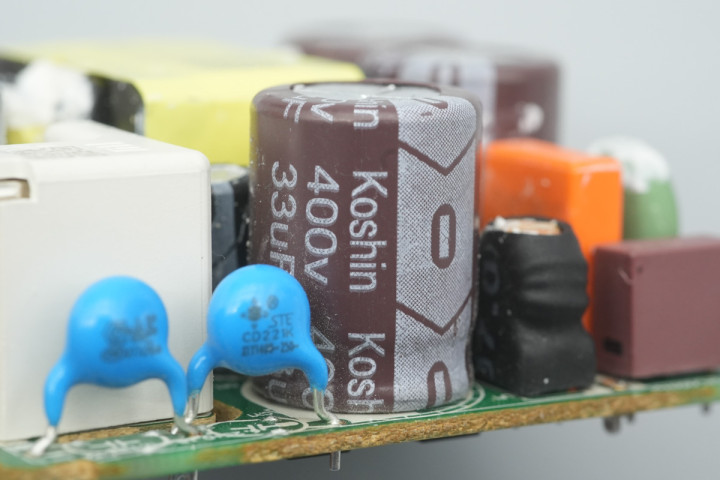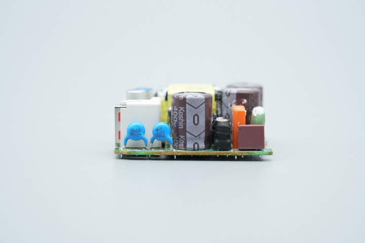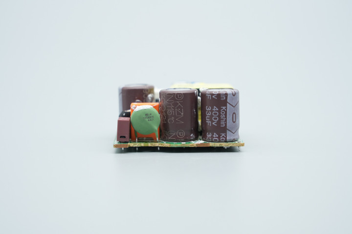 PCBA模块侧面设有共模电感,高压滤波电容和蓝色Y电容。