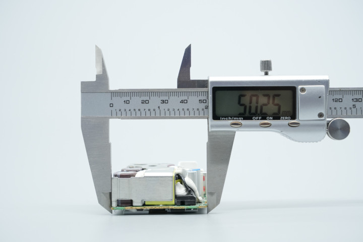 使用游标卡尺测得PCBA模块长度约为50.3mm。