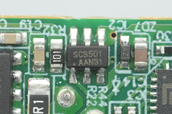 初级主控芯片来自南芯科技,型号SC3005Z,是一颗高性能多模式反激式PWM控制器,支持CCM/QR和DCM工作模式。芯片内置X电容放电和高压启动,可实现极低的待机功耗和超快的启动时间。