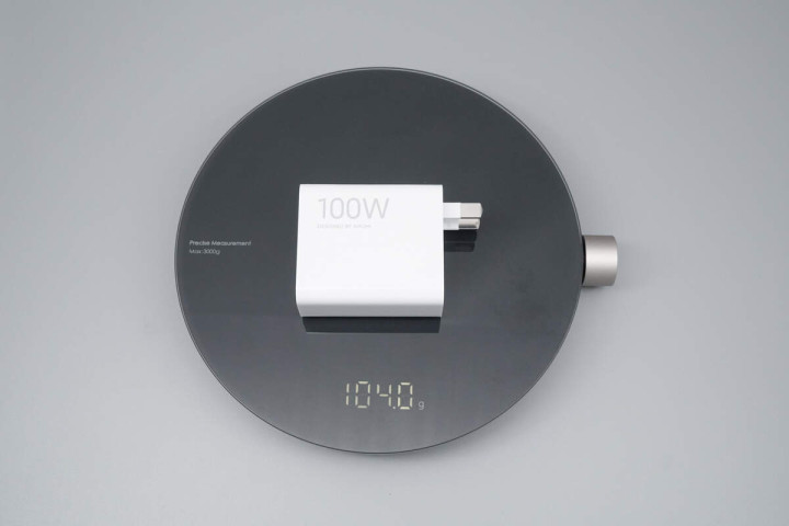 测得充电器重量约为104g。