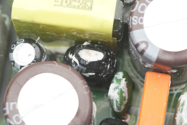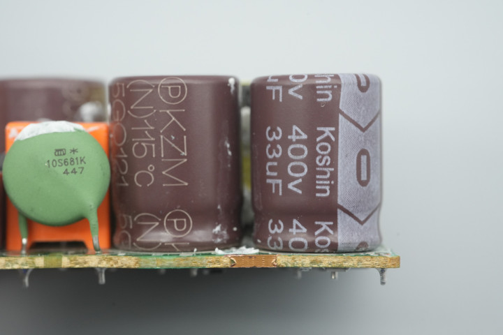 另一侧还设有两颗高压滤波电容,规格同样为400V33μF。