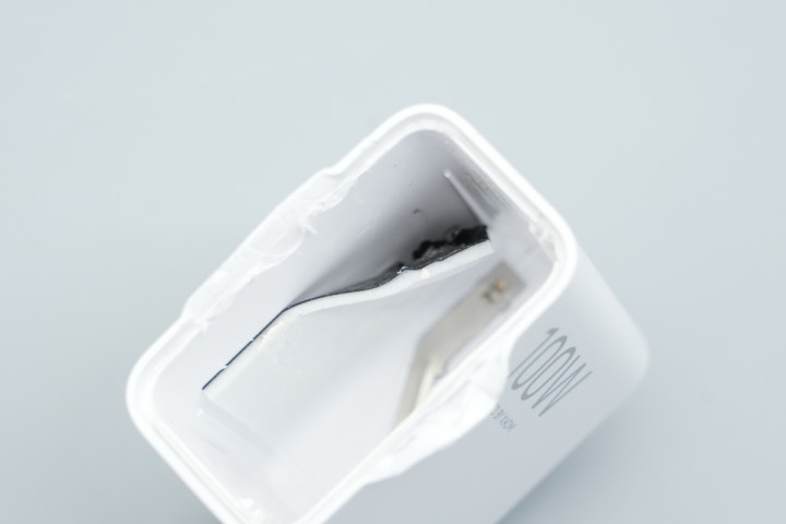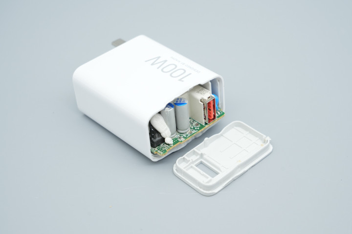 看完了小米17手机100W氮化镓充电器的外观,下面就进行拆解,一起看看内部的设计和用料。