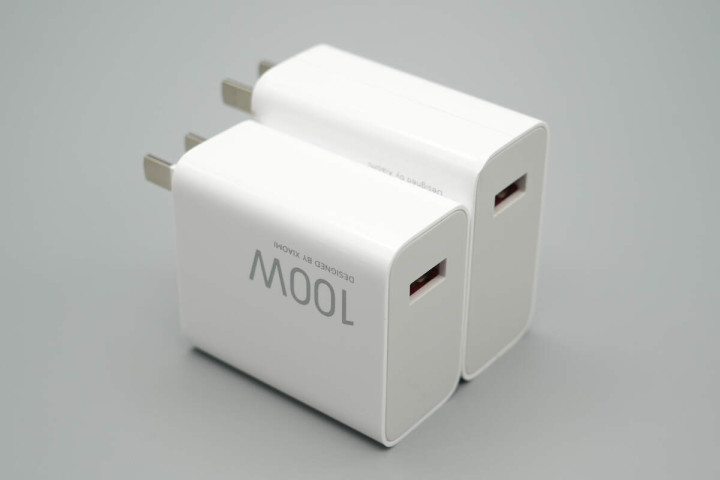 机身两侧均印有100W和DESIGNED BY XIAOMI字样。