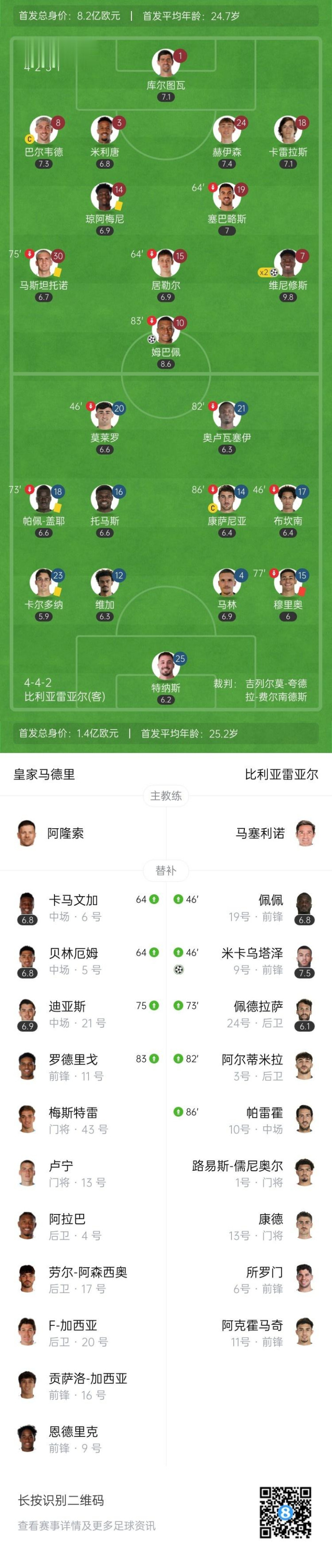 第81分钟,贝林厄姆前场积极反抢夺回球权,姆巴佩分球右侧迪亚斯后前插,后者回做,姆巴佩跟进包抄破门,皇马3-1领先,但进球后姆巴佩突然无对抗坐在地上表情痛苦示意需要换人↓