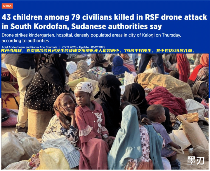 据苏丹官方通报,该国准军事组织快速支援部队(RSF)对科洛吉市发动了无人机袭击,一架无人机将4枚炸弹分别投向了幼儿园、医院和人口密集区;官方当时给出的伤亡数字只有9人,其中包括4名女性。