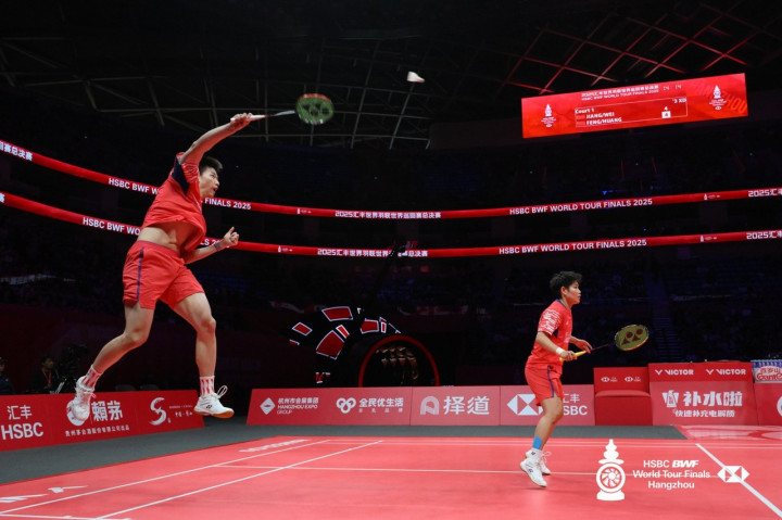 12月21日,在杭州奥体中心体育馆进行的2025年世界羽联巡回赛年终总决赛混双项目决赛中,中国组合冯彦哲/黄东萍21-12、21-17战胜队友蒋振邦/魏雅欣夺冠。
